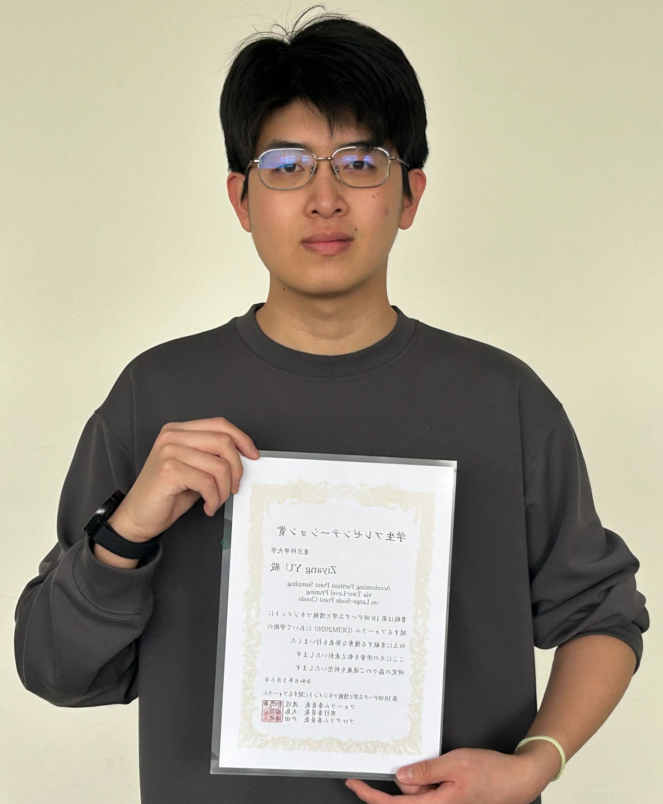 ”この度学生プレゼンテーション賞をいただき、ありがとうございます。研究を進めるあたり、指導と研究環境を賜りました指導教員の先生に、研究活動において多くのご協力と有益な議論をしてくださった研究室の皆様に心より深く感謝申し上げます。本受賞を励みとして、今後もより一層研究に精進してまいります。”