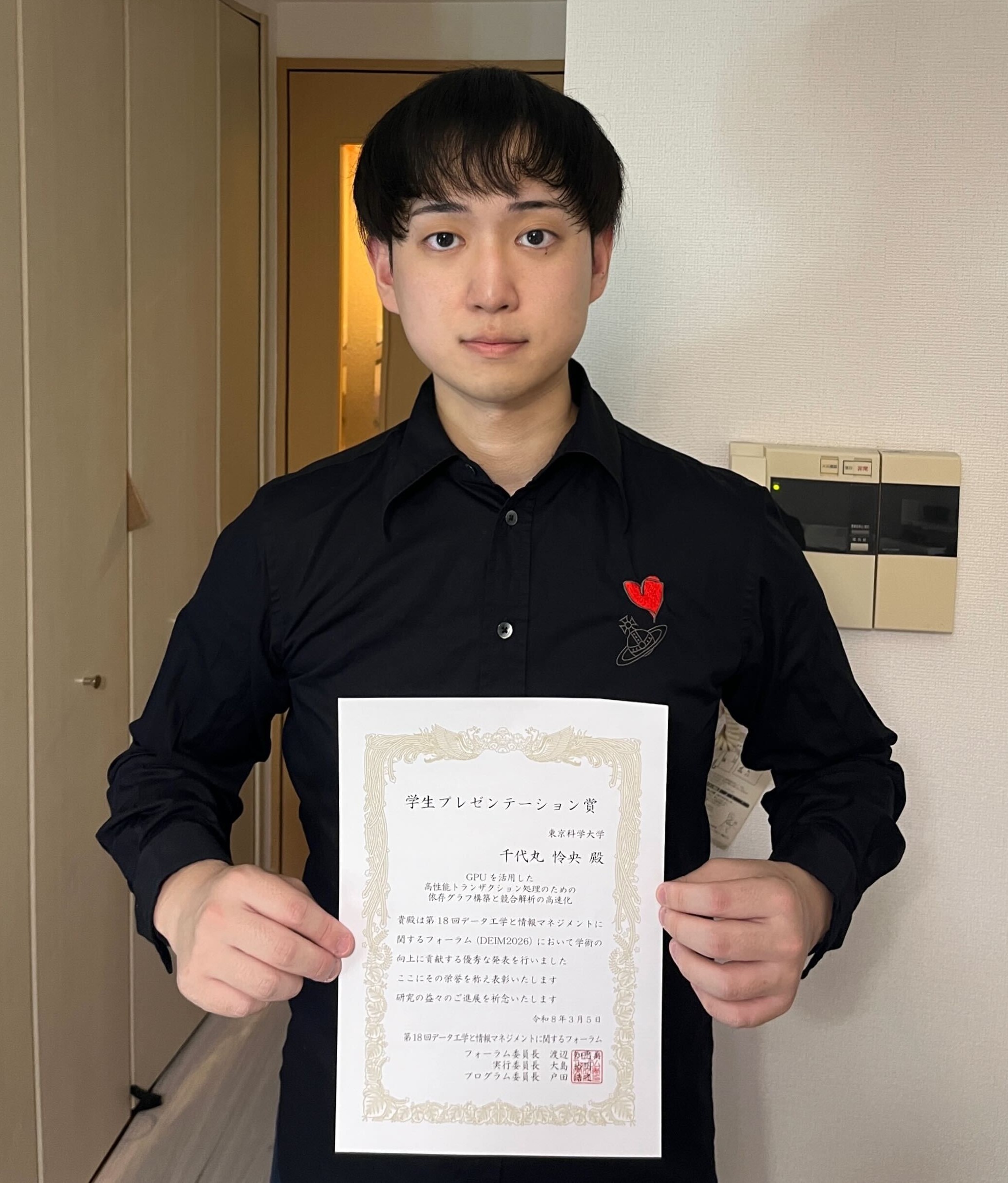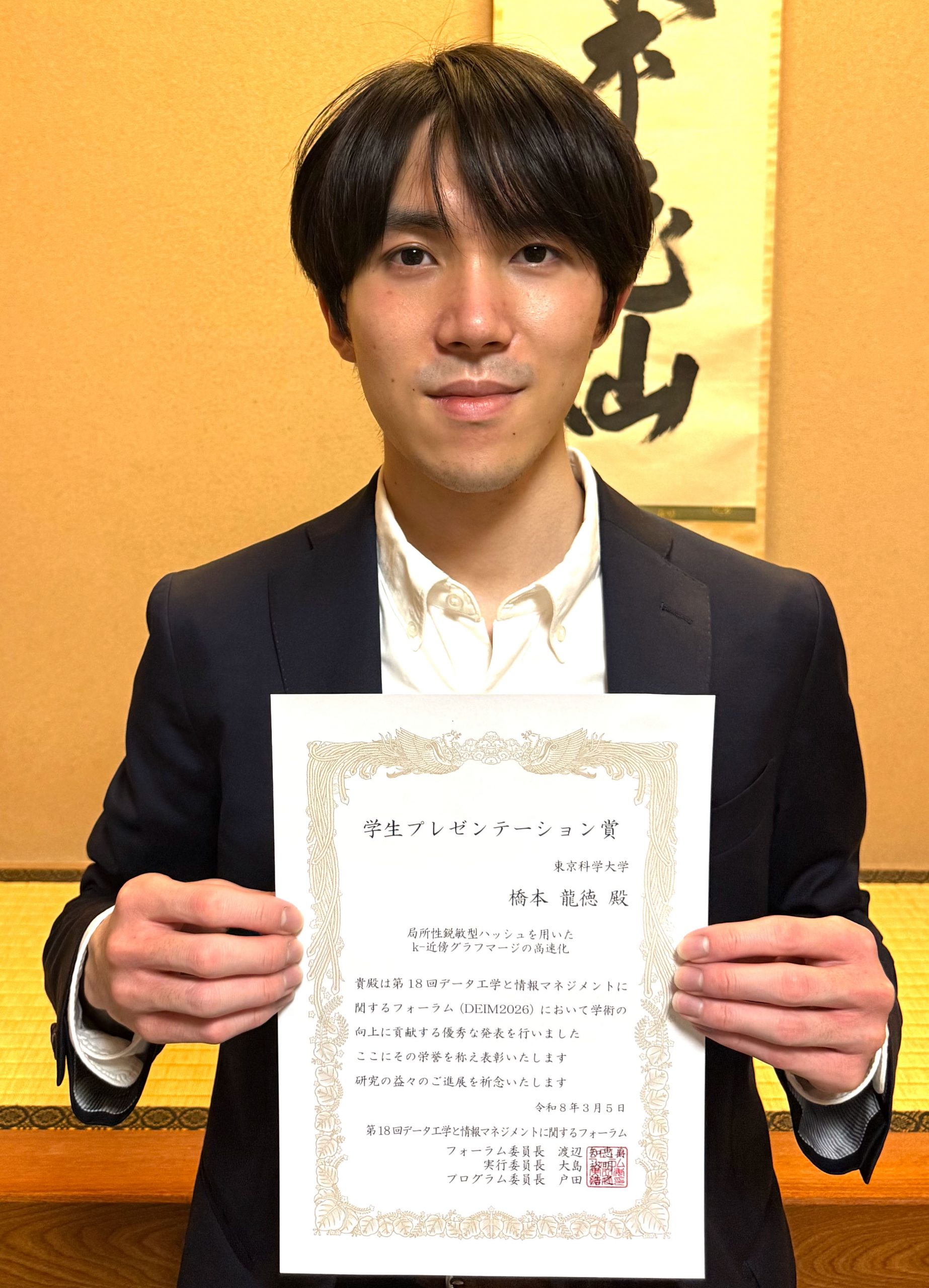 2026年2月28日~3月5日にオンライン+神戸国際会議場で直列開催された、第18回データ工学と情報マネジメントに関するフォーラム(DEIM2026)にて、研究室から6件発表しました。